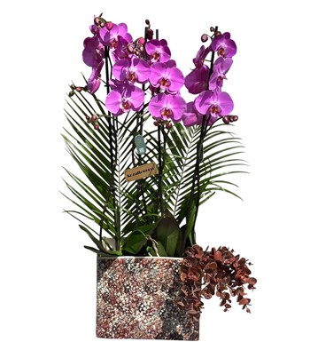 Mozaik Saksıda 4 Dal Fuşya Orkide | Koza Flowers